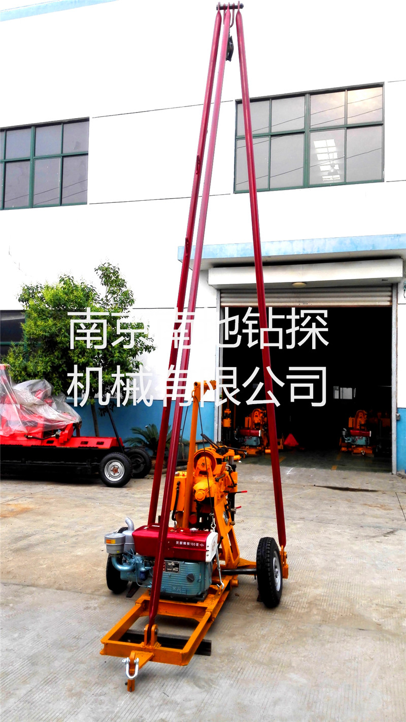 特點:利用卷揚機可上下汽車、自起落塔、爬坡和移孔,是目前較為科學、經濟型鉆塔,拖掛移孔方便、安全平穩。