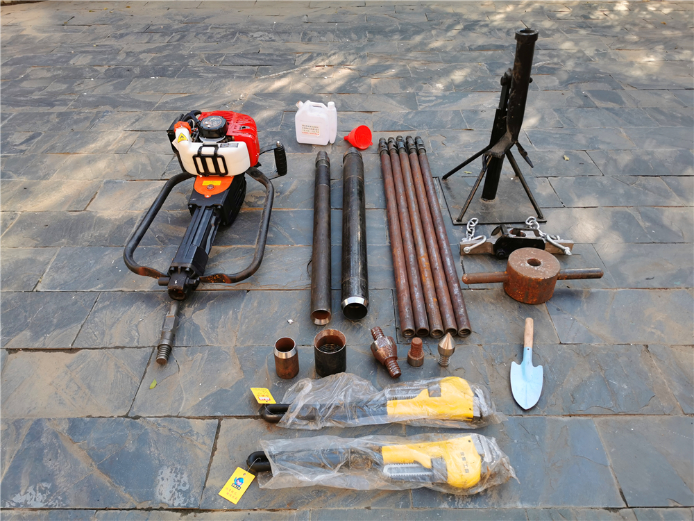 1、鉆機:含汽油發(fā)動機、沖擊鉆進(jìn)裝置。